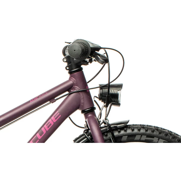 Le cadre en aluminium 6061 traité thermiquement de l’Acid 200 est aussi résistant et de haute qualité que les VTT Cube pour adultes. Il est extrêmement léger et solide grâce à un tube diagonal spécialement conçu pour s’adapter au physique des jeunes cyclistes. Les freins V-brake sur la roue avant et arrière fonctionnent également de la même manière que ceux du vélo de papa ou de maman. Et comme il est difficile d’éviter les accidents sur le chemin du professionnalisme, la patte de dérailleur peut être changée très facilement – ce qui signifie que vous n’avez pas à changer tout le cadre après une chute.
