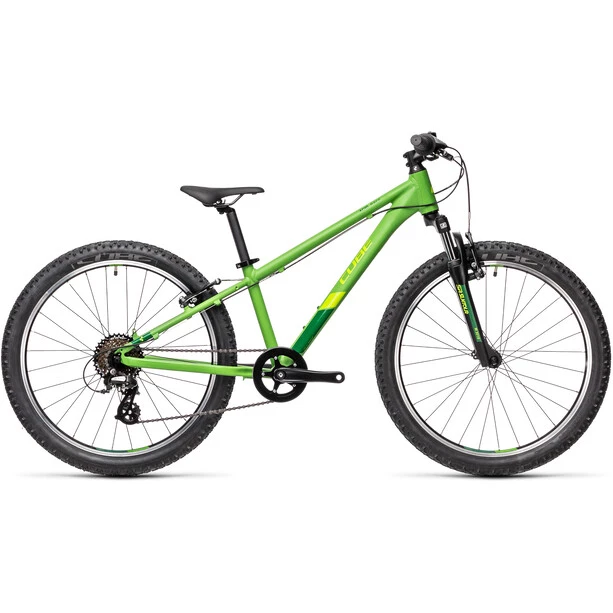 L’Acid 240 est le vélo de prédilection des jeunes pilotes en herbe qui veulent à tout prix suivre leurs amis et leurs parents. La fourche suspendue Suntour assure un confort de conduite agréable et une stabilité directionnelle optimale, et absorbe toutes les bosses avec facilité. Les vitesses Shimano à 7 rapports offrent les meilleures conditions pour accélérer – elles permettent de maîtriser facilement toutes les montées, même les plus raides. Pour plus de sécurité et de contrôle, CUBE a également installé des freins puissants en V – avec des leviers de frein qui ont été précisément adaptés aux mains des enfants et un modulateur de puissance sur la roue avant. Et parce que les héros Mountabike de demain ne manqueront pas de faire une ou deux chutes, le vélo a été équipé d’une patte de dérailleur remplaçable pour éviter les réparations coûteuses. Alors, montez et partez !