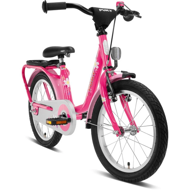 Destiné aux besoins des enfants un peu plus âgés à partir de 4 ans, le PUKY STEEL 16 est le vélo d’initiation optimal de la série acier à succès. Un cadre ergonomique, le kit de sécurité PUKY intégré et un système de freinage adapté aux enfants font du PUKY STEEL 16 un compagnon fidèle. Le kit de sécurité PUKY comprend des poignées de sécurité pour guidon, un coussinet de guidon testé, un boîtier de chaîne fermé ainsi que des réflecteurs à l’avant, à l’arrière et sur les pédales. Même le corps de la cloche est conçu de telle sorte qu’il ne peut être ouvert et qu’aucune arête vive ne peut être mise en évidence. En plus du frein à rétropédalage, le frein V-brake sur la roue avant est facile à utiliser et offre un freinage sûr selon les normes en vigueur. Le support stable du PUKY STEEL 16 est également en acier et fermement relié au châssis. Le revêtement en poudre résistant aux chocs garantit une belle apparence durable du vélo pour enfants. Les roues et le guidon à roulements à billes garantissent un fonctionnement souple et un entretien réduit.