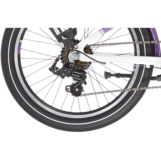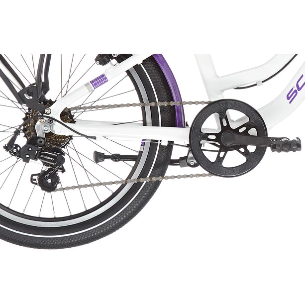 Le Twin Bike S’COOL chiX pour jeunes pilotes, avec ses 20 roues et ses 7 vitesses à dérailleur, est un vélo polyvalent et convaincant pour le trajet de l’école, la sortie à la piscine ou le premier petit tour du week-end. Avec son entrée basse, son garde-chaîne, ses garde-boue, ses feux et autres, il est entièrement optimisé pour la circulation routière.