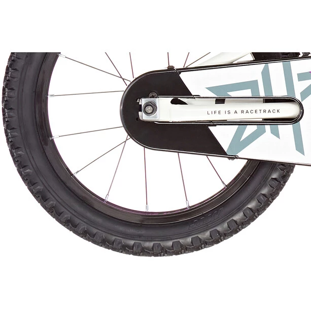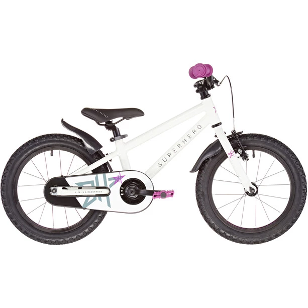 Le Superhero est équipé de pneus à sculptures adhérentes, d’un guidon rizer, de garde-boue de motocross stylés et d’une tige de selle à fixation rapide, comme les grands. Il s’appuie sur un frein en V fonctionnant en douceur sur la roue avant et sur le coaster éprouvé sur la roue arrière pour contrôler la propulsion des jeunes. L’entraînement à l’entrée avec une grande protection de la chaîne est tout ce dont vous avez besoin sur ce vélo. Les petits héros de la bicyclette gardent ainsi le contrôle de la situation et les jambes de leur pantalon restent propres.